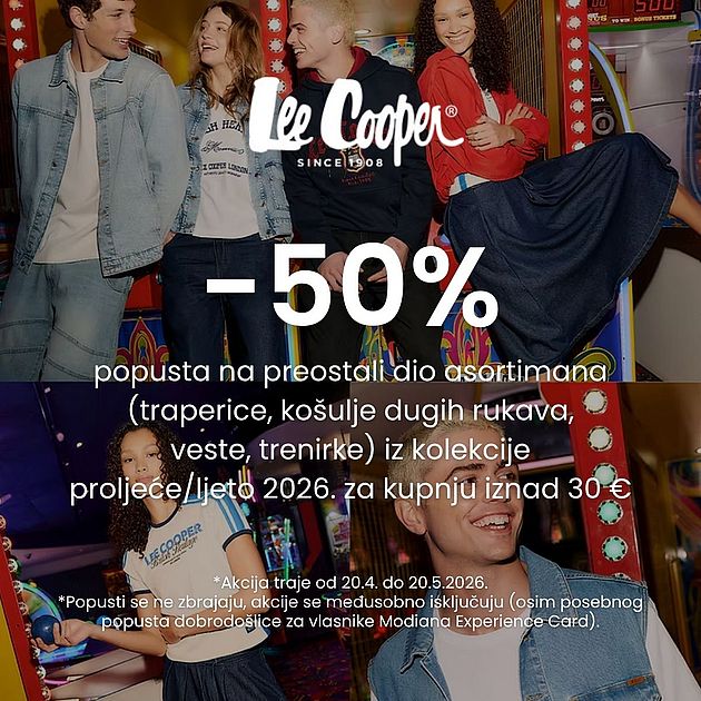 na preostali dio asortimana (traperica, košulja dugih rukava, vesti i trenirki) iz kolekcije proljeće/ljeto 2026. prilikom kupnje iznad 30€